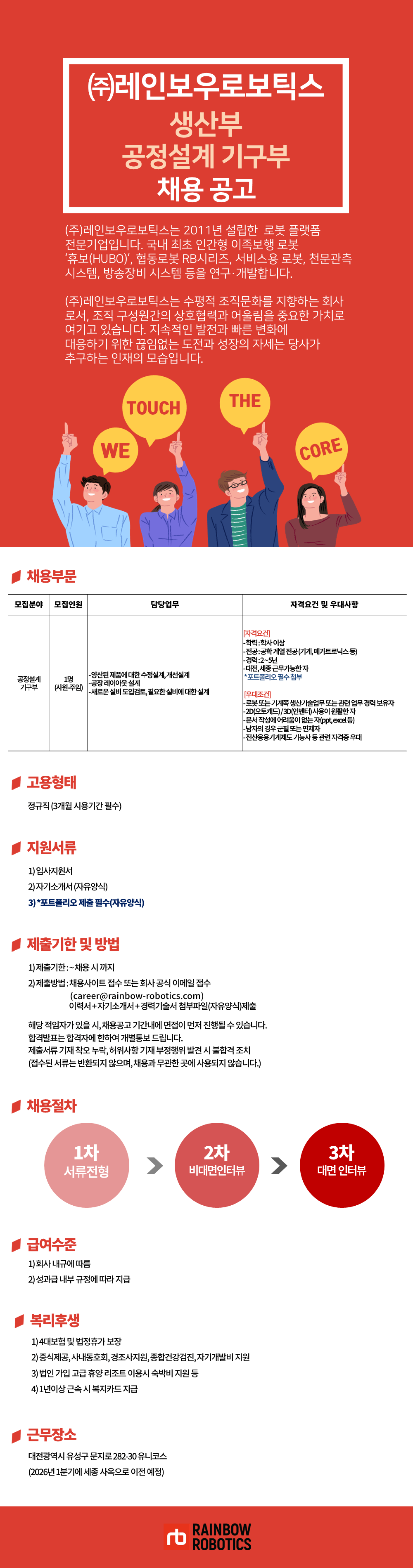 (주)레인보우로보틱스 생산부 생산공정설계 기구부