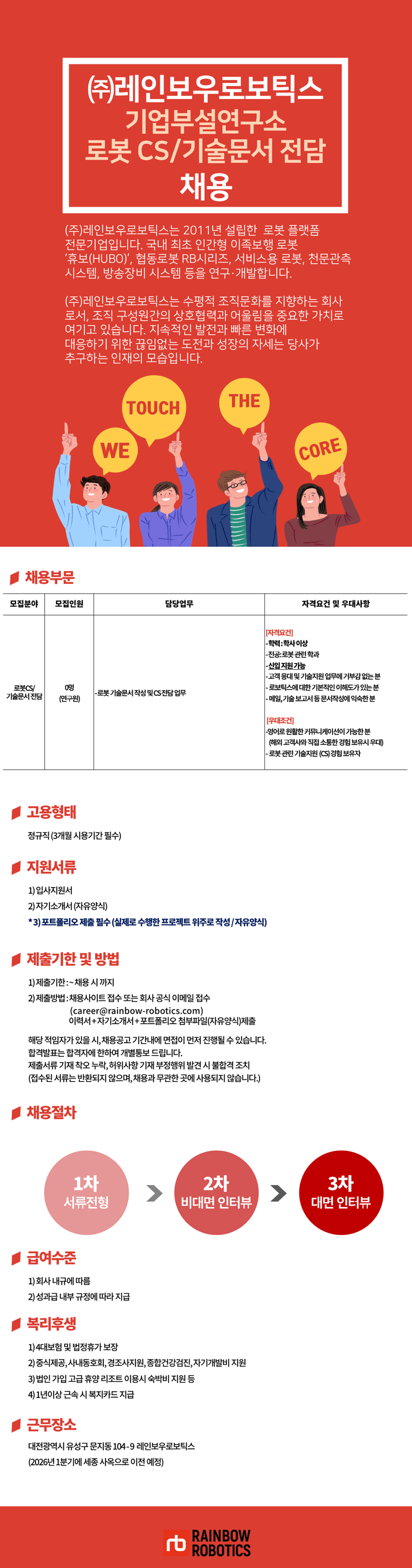 (주)레인보우로보틱스 로봇 CS 및 기술문서 전담 인력