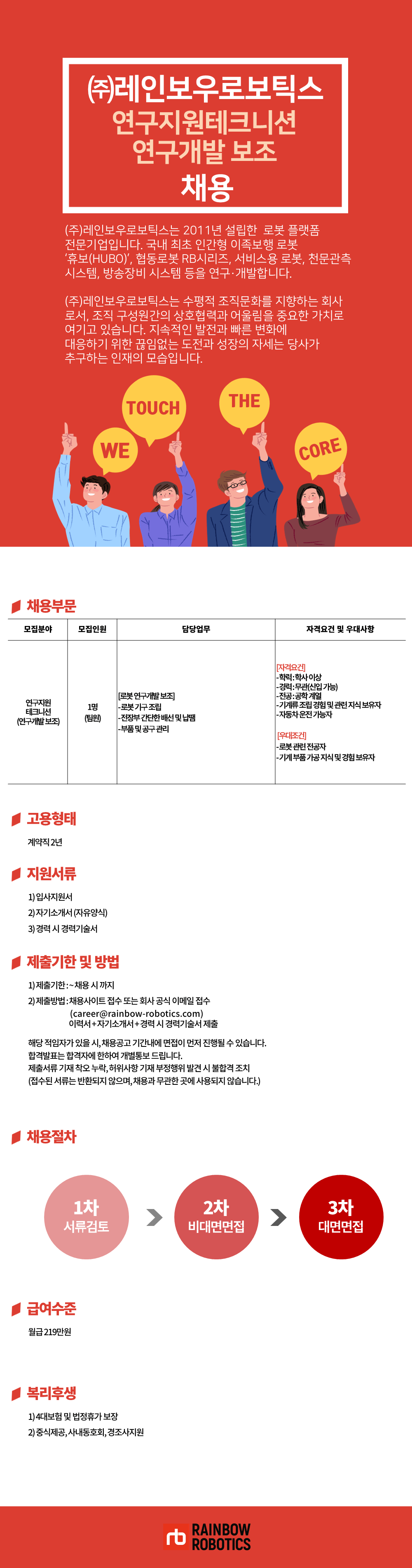 (주)레인보우로보틱스 연구지원테크니션(연구개발 보조)