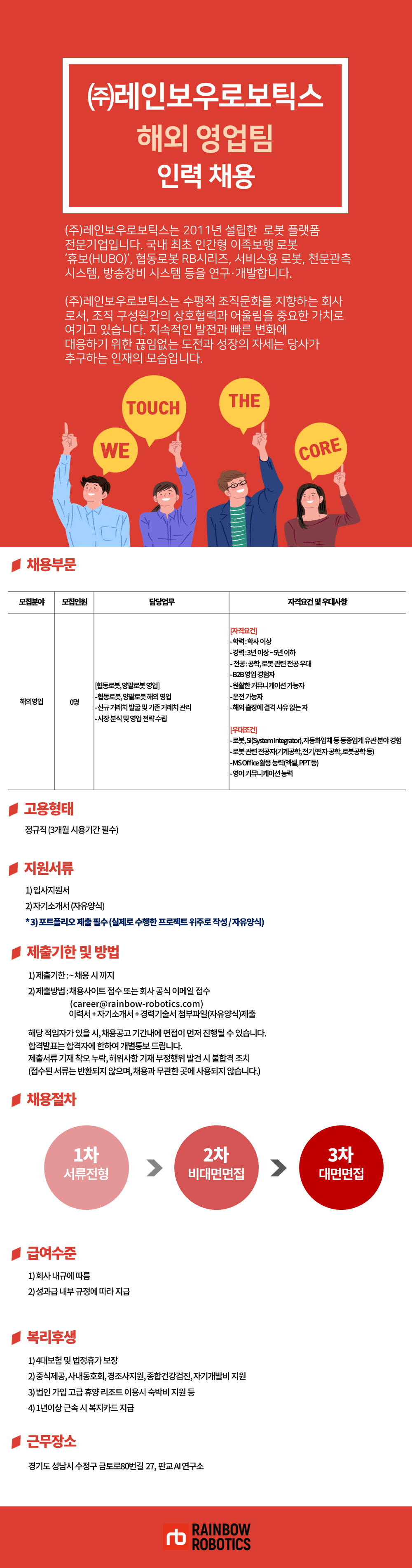 (주)레인보우로보틱스 해외 영업 팀원 채용(판교 근무)