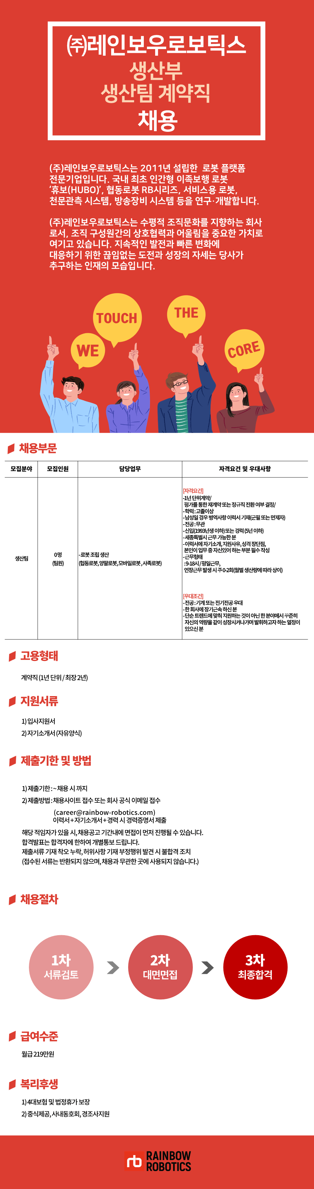 (주)레인보우로보틱스 생산구매자재팀 생산파트 계약직 채용