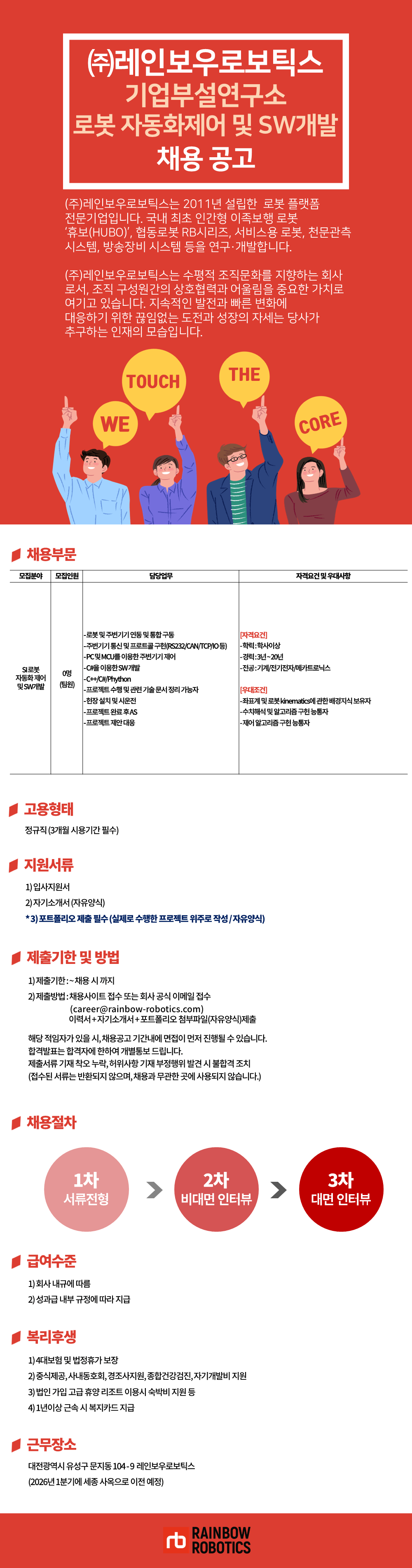 (주)레인보우로보틱스 연구소 로봇 자동화제어 및 SW 개발
