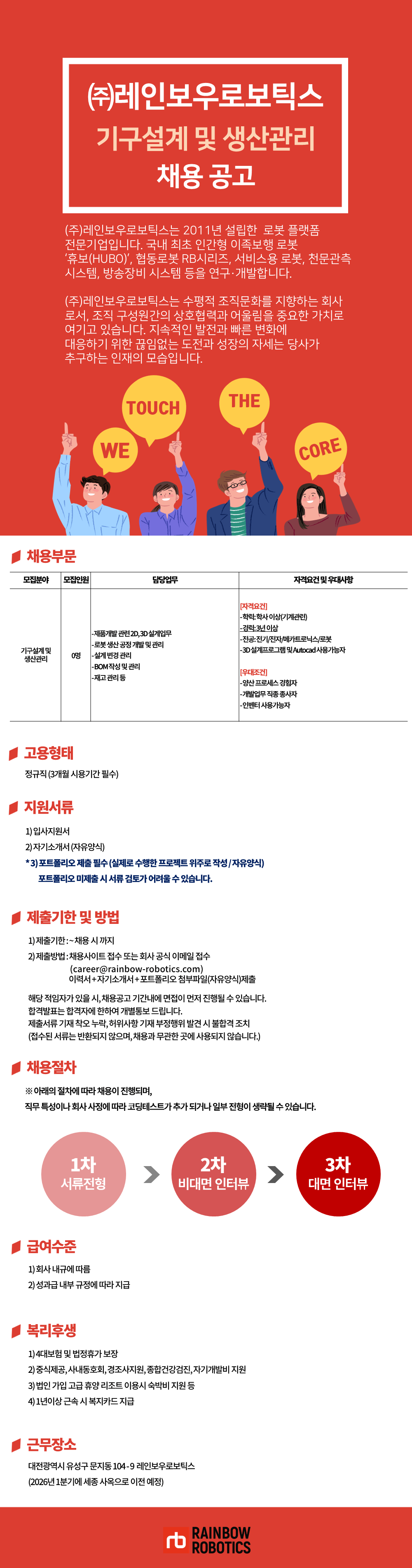 (주)레인보우로보틱스 기구설계 및 생산관리