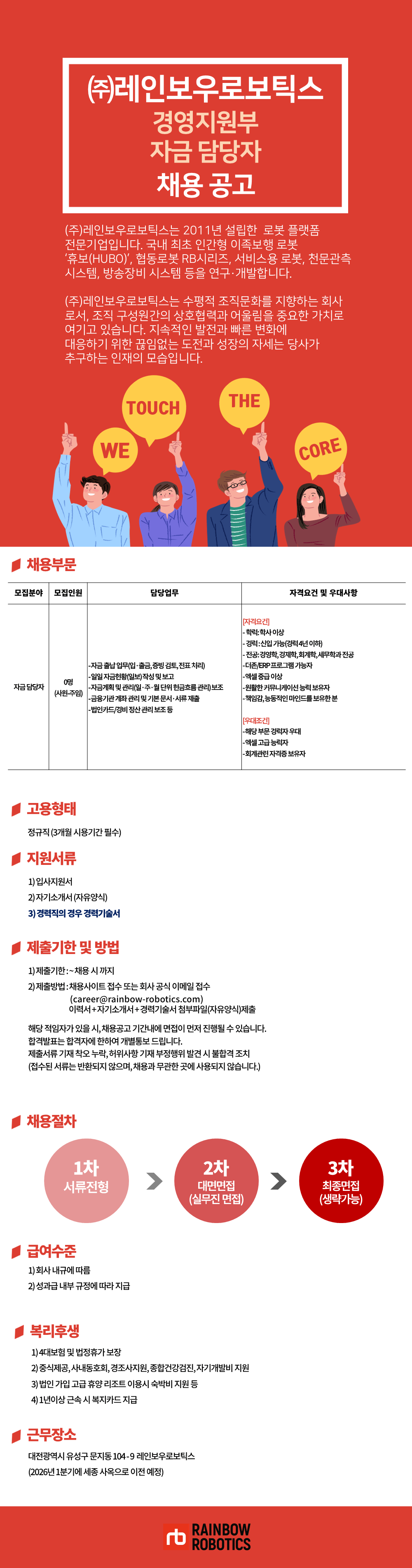 (주)레인보우로보틱스 경영지원부 자금 담당자