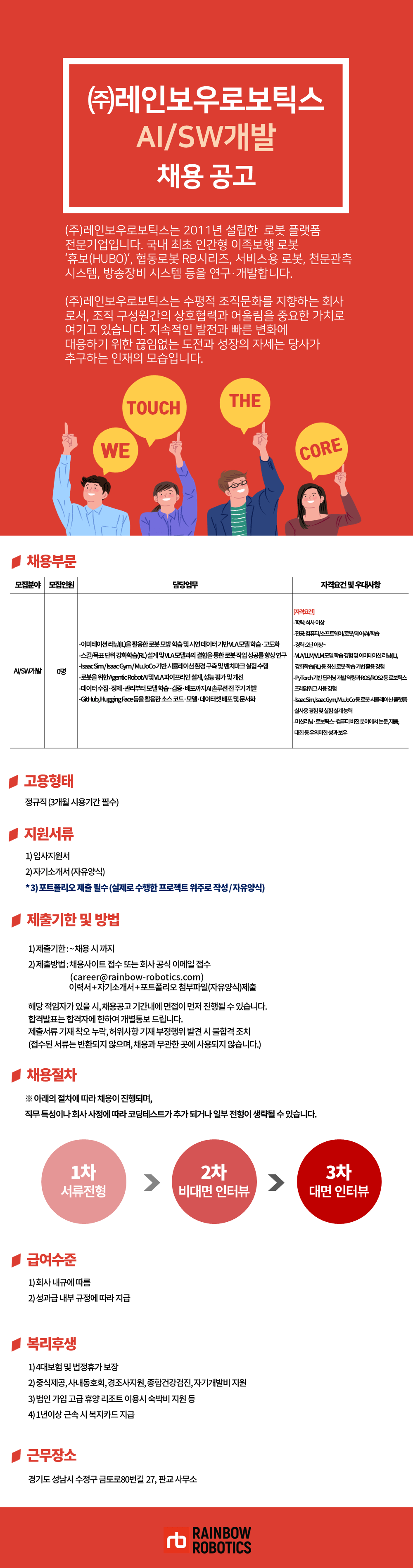 4. 개인정보 처리업무 위탁 안내 회사는 사람인에 채용 진행에 관한 업무를 위탁하였으며, 관계법령에 따라 위탁 처리되는 개인정보가 안전하게 관리될 수 있도록 필요한 최선의 조치를 취하고 있습니다. 또한 위탁 처리하는 정보는 필요한 최소한의 범위에 국한됩니다.