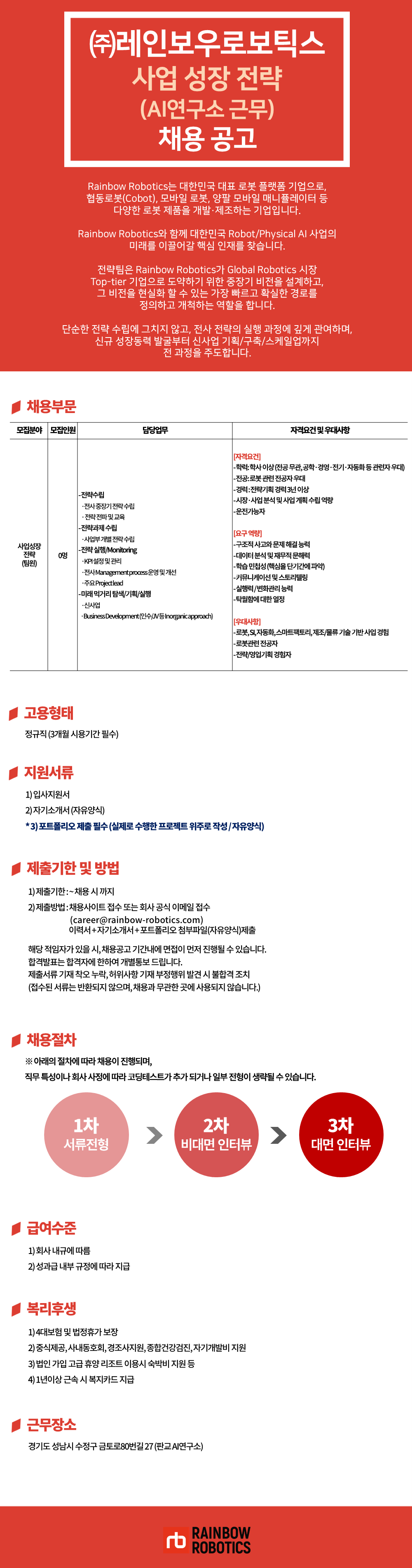(주)레인보우로보틱스 사업성장 전략 팀원 채용 (AI연구소 근무)