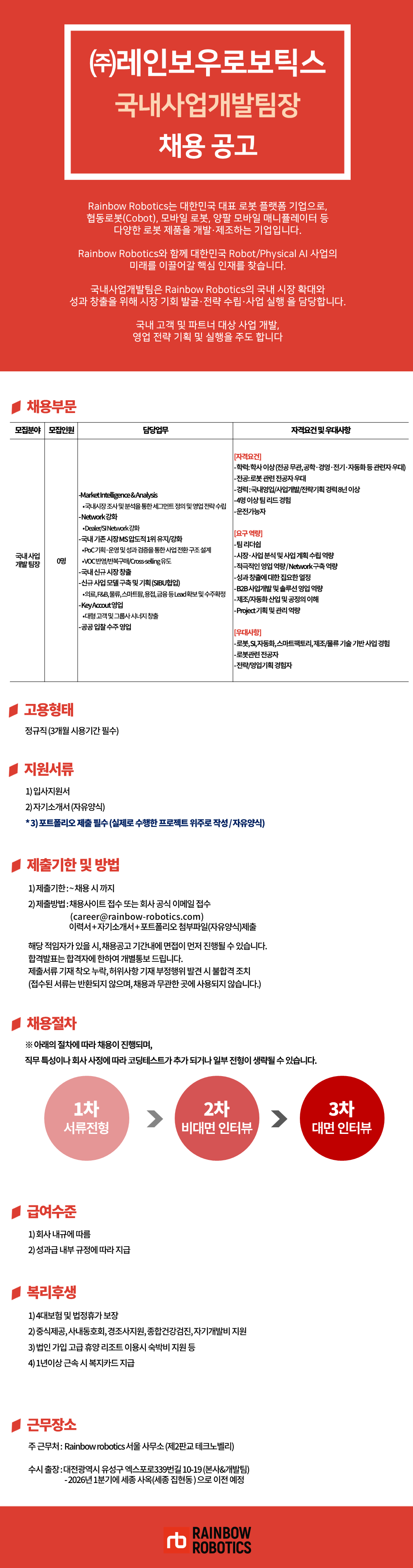 (주)레인보우로보틱스 국내사업개발 팀장 채용