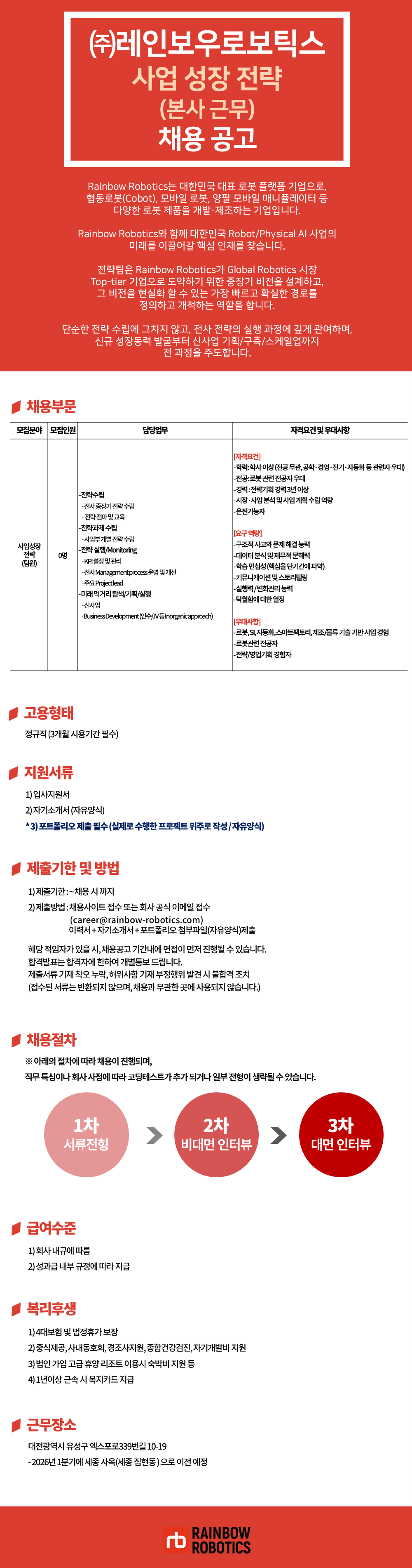 (주)레인보우로보틱스 사업성장 전략 팀원 채용 (본사 근무)