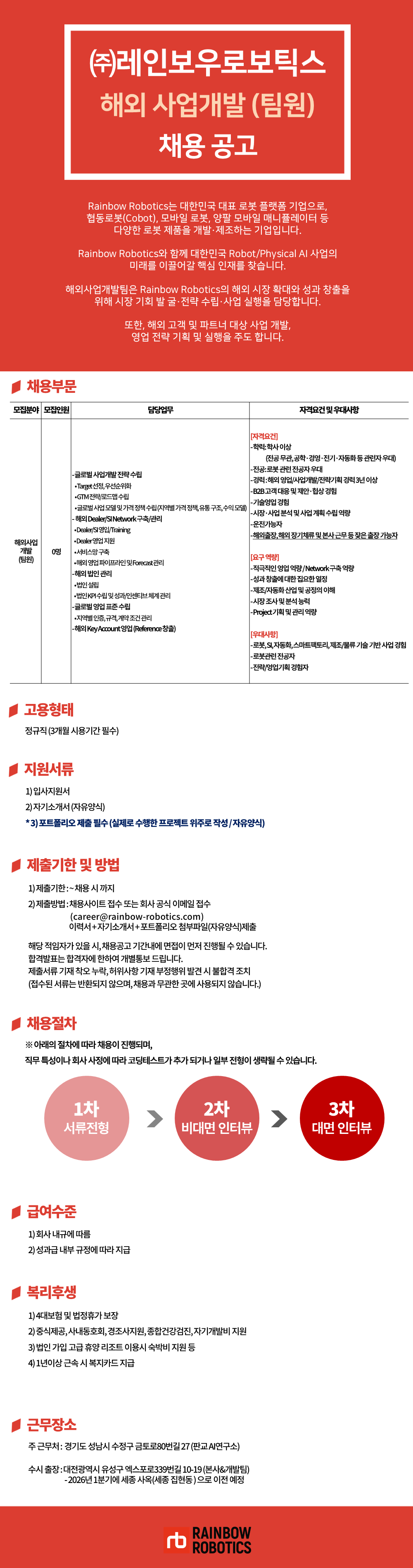 (주)레인보우로보틱스 해외사업 개발 팀원 채용