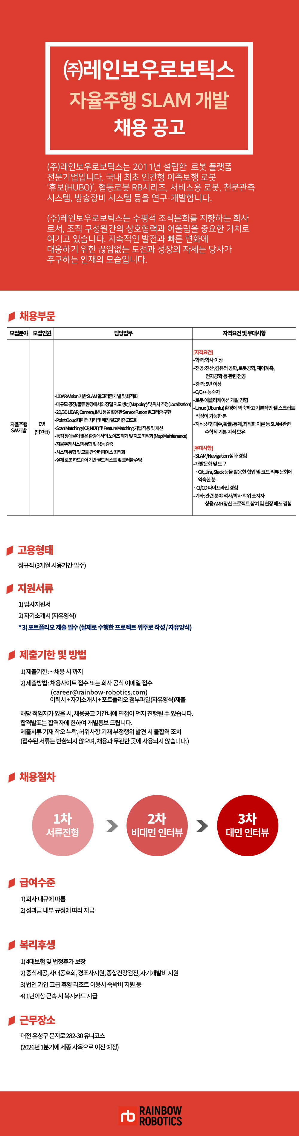 (주)레인보우로보틱스 자율주행 SLAM개발