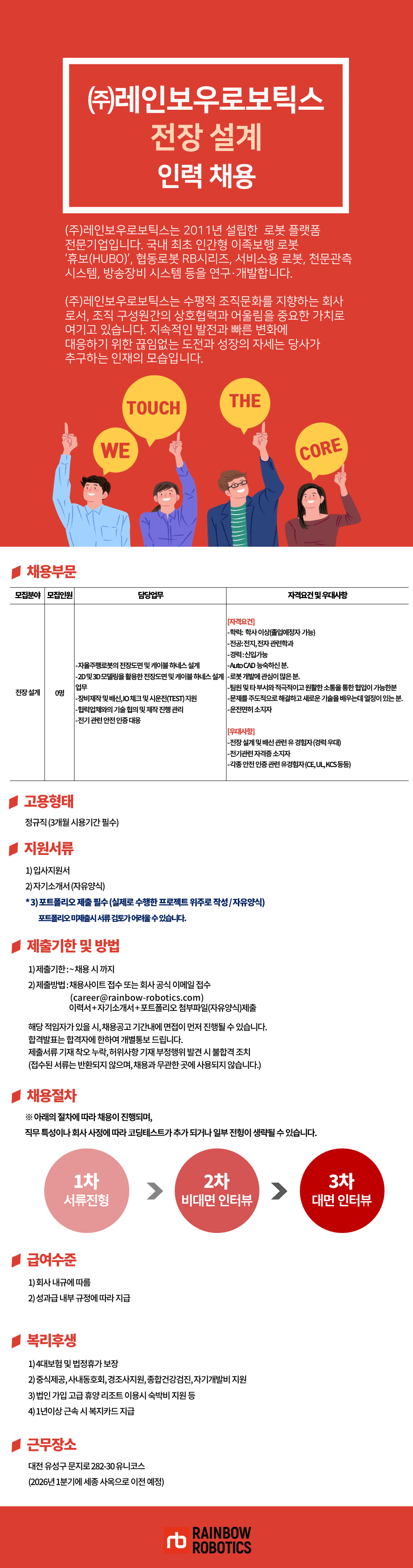 4. 개인정보 처리업무 위탁 안내 회사는 사람인에 채용 진행에 관한 업무를 위탁하였으며, 관계법령에 따라 위탁 처리되는 개인정보가 안전하게 관리될 수 있도록 필요한 최선의 조치를 취하고 있습니다. 또한 위탁 처리하는 정보는 필요한 최소한의 범위에 국한됩니다.